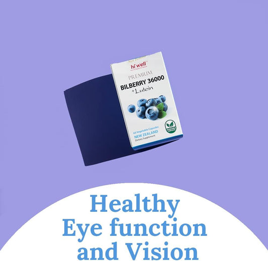 Hi Well Premium Bilberry 36000 + Lutein 12mg Capsules - Pure & Natural New Zealand Formula