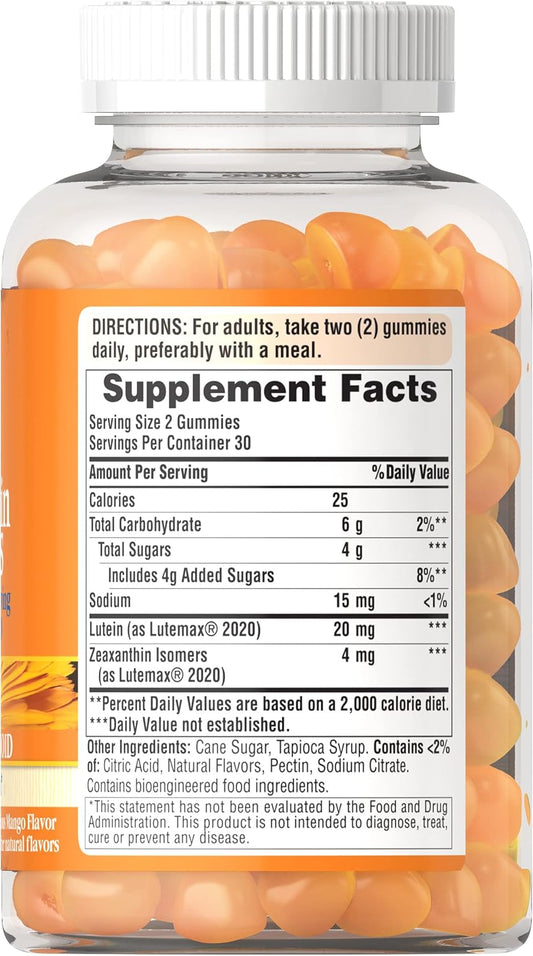 Lutein and Zeaxanthin Gummy Supplement with Natural Mango Flavor - 60 Count