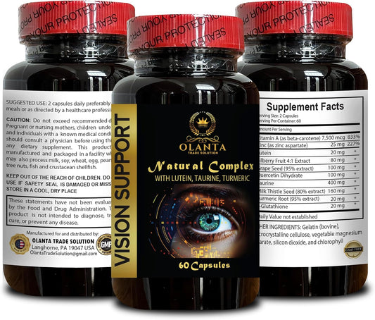 Organic Lutein Supplements with Beta-Carotene & Antioxidants for Vision Support - 2 Bottles 120 Capsules