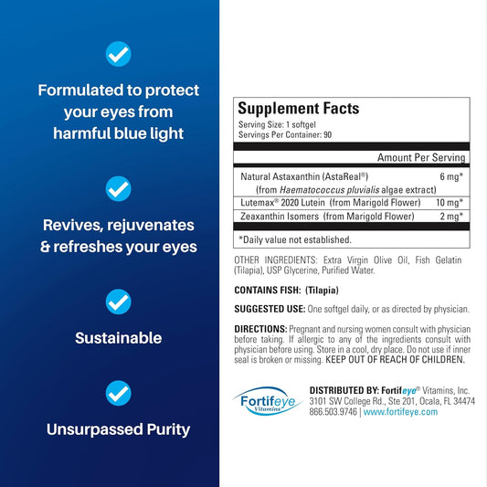 Fortifeye Focus Eye Care Supplement with Triple Carotenoid | Astaxanthin, Lutein, Zeaxanthin | 90 Softgel Capsules
