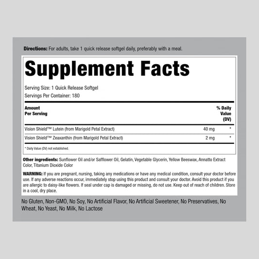 180 Softgels Piping Rock Lutein & Zeaxanthin 40mg Eye Vision Vitamins - Non-GMO, Gluten Free