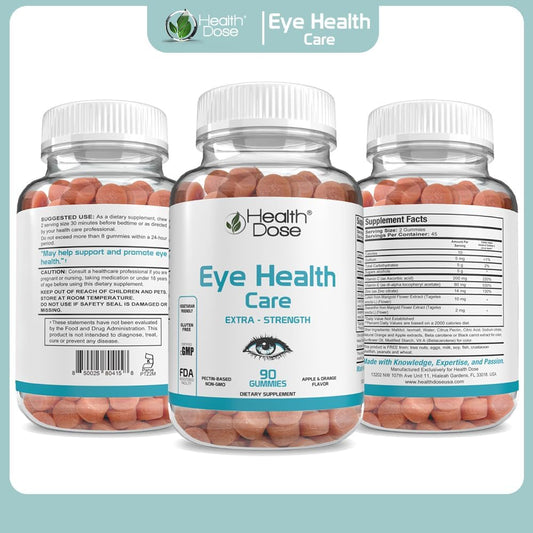 Eye Health Gummies with Lutein & Zeaxanthin for Eye Strain, Dry Eyes, Visual Performance - Apple & Orange Flavor - 90 Gummies