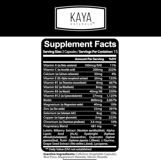 Lutein and Zeaxanthin Eye Health Supplement with Blueberry and Bilberry Extract - Vegan, Lab Verified, 60-Day Guarantee - 60 VegCaps
