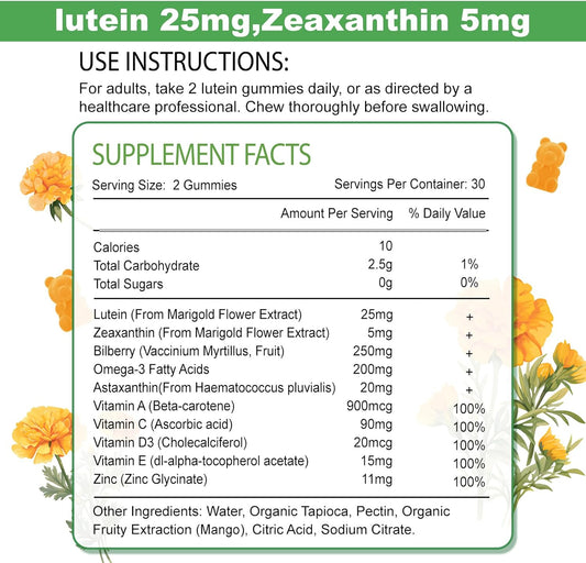 60-Count Lutein and Marigold Flower Vision Support Gummies for Healthy Eyes