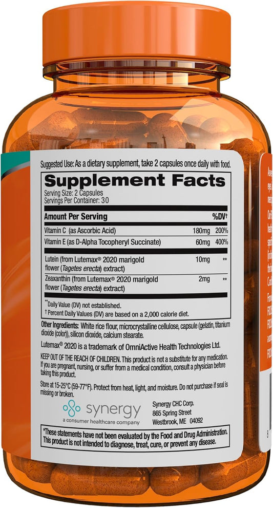 Lutemax® 2020 Eye Vitamins with Vitamin C & E - 60 Count Lutein and Zeaxanthin Supplement for Eye Health Support