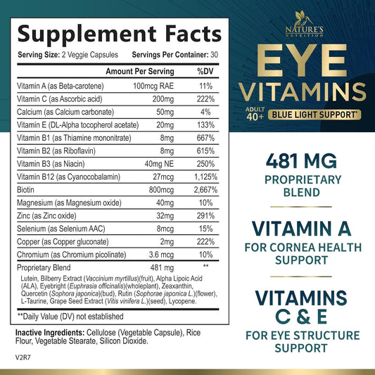 Natural Eye Health Supplement with Lutein, Zinc, Vitamins C & E - Supports Vision, Macular Health, & Dry Eyes - 60 Capsules