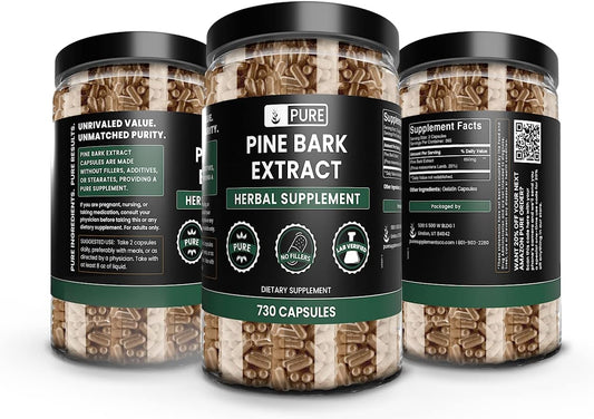 Pure Pine Bark Extract 730 Capsules | No Magnesium or Rice Fillers | Lab Verified, 100% Original Ingredients