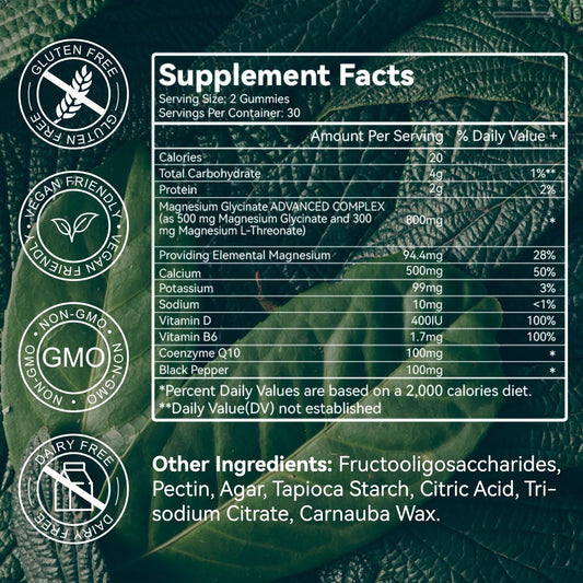 Sugar-Free Magnesium Glycinate Gummies with L-Threonate - 500mg Magnesium Potassium Supplement with Vitamin D, B6, CoQ10 - Strawberry Flavor - 120 Gummies