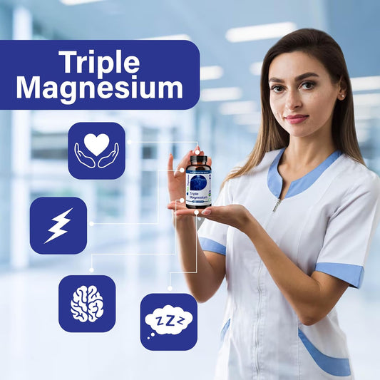 Triple Magnesium Complex 235mg Capsules for Muscle, Nerve Function, Bone Health, Energy, Relaxation, Sleep - 60 count