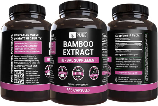 365 Capsules of Pure Bamboo Extract - No Magnesium or Rice Fillers - Lab Verified Quality