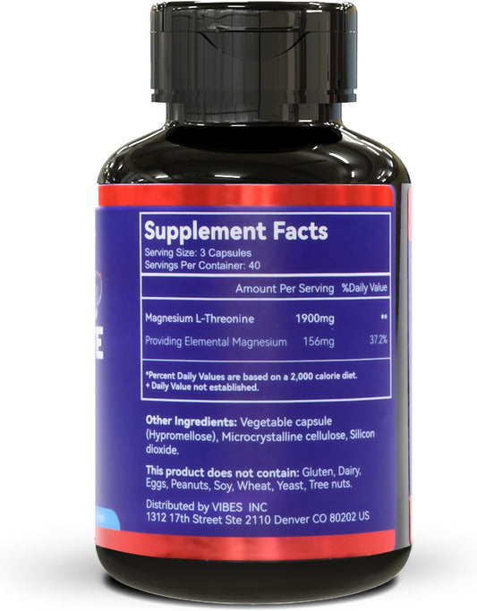 1900mg Magnesium L-Threonine Capsules - Non GMO & Gluten Free Supplement - 240 Veg Capsules