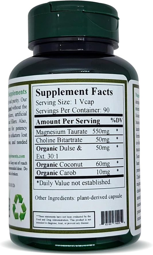 Organic Magnesium Taurate Supplement - High Absorption, Non-GMO, Vegan, Gluten-Free - 90 Capsules, Made with Organic Ingredients