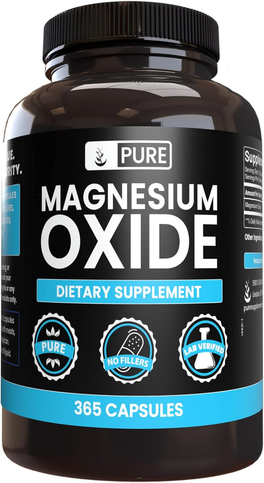 365 Capsules of Pure Magnesium Oxide and Hops Extract, No Fillers, Original Ingredients, Bundle