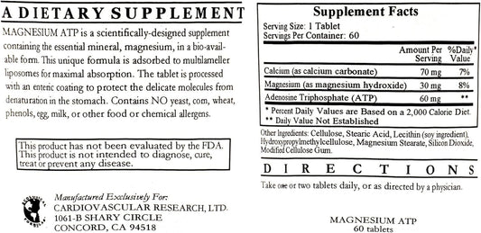 60 Count Cardiovascular Research Magnesium ATP Tablets for Heart Health
