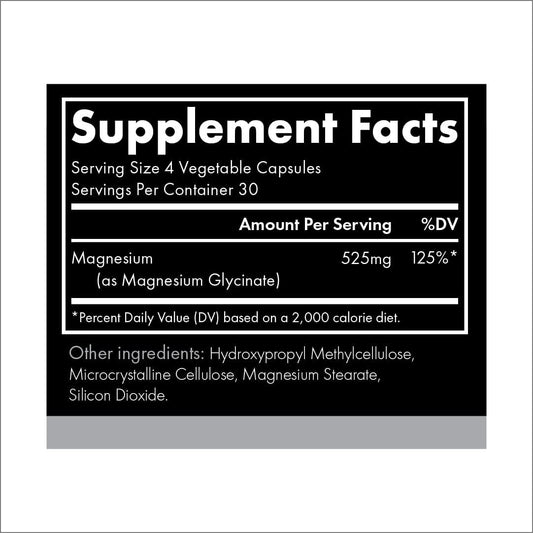 High Absorption Magnesium Glycinate Supplement 525mg - Vegan & Non-GMO - 120 Capsules - Supports Magnesium Levels