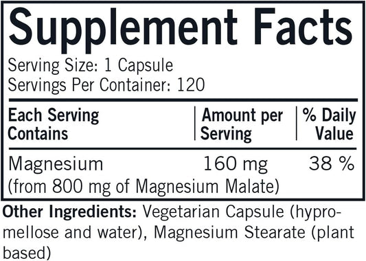 Hypoallergenic Kirkman Magnesium Malate Capsules - 800 mg (120 Count) for Restful Sleep and Muscle Relaxation