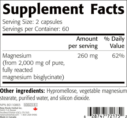 Magnesium Bisglycinate Complex 200mg V-Capsules - Supports Bone and Teeth Health, Aids in Metabolizing Carbs, Proteins, and Fats