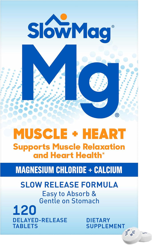 Slow-Mag Muscle and Heart Supplement with Magnesium Chloride, Calcium, and Slow-Fe Iron Deficiency Support - 120 Count & 60 Count