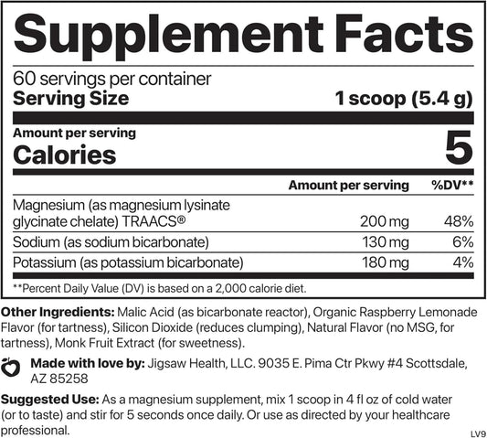 Jigsaw Health MagSoothe: Raspberry Lemonade Magnesium Glycinate Powder Supplement with Fast-Acting Calming Effect - 60 Servings