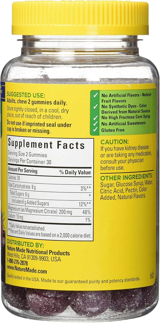 Nature Made High Absorption Magnesium Citrate Gummies, 200mg, Mixed Berry, 60 Count - Pack of 12