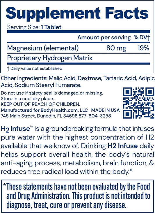 60 BodyHealth H2 Infuse Molecular Hydrogen Tablets with Elemental Magnesium for Metabolism Support in Water