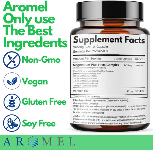 60 Tablets of aromel Magnesium Complex with Bisglycinate and Chloride for Enhanced Absorption