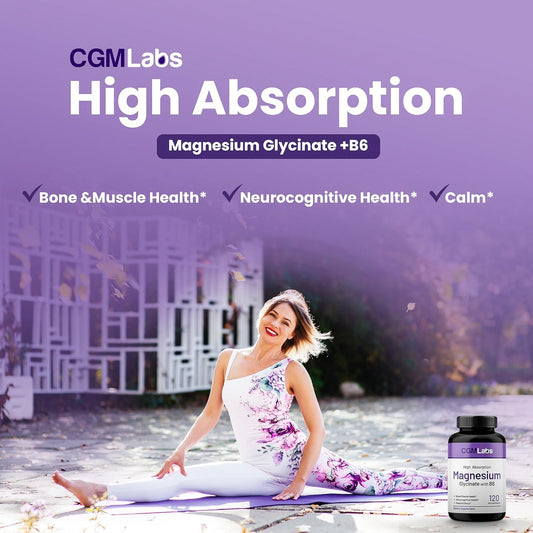High Absorption Magnesium Glycinate & Vitamin B6 Supplement for Energy, Calm, Relaxation, and Muscle Health - Non-GMO, Gluten-Free, 3rd Party Tested by CGMLabs