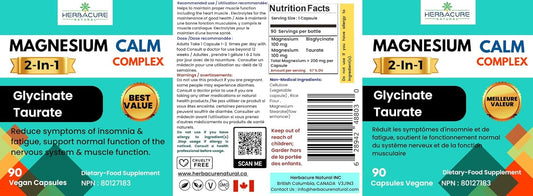 New 2024 HerbaCure Natural Magnesium Calm Complex - 2 in 1 Glycinate and Taurate (90 Units) - USA Sourced Ingredients Only