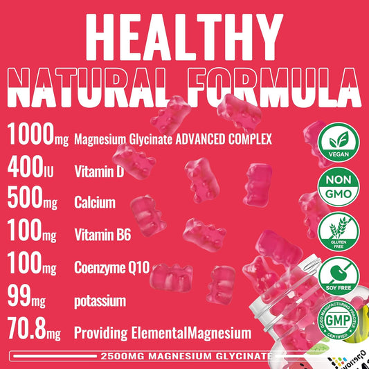 Sugar-Free Magnesium Glycinate Gummies with Potassium & Vitamins for Calm Mood & Sleep - 90 Watermelon Gummies - 2500mg
