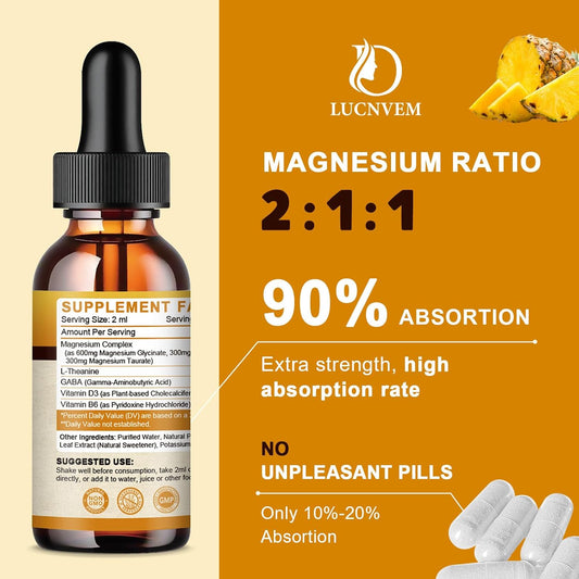 High Absorption Magnesium Complex Drops with GABA, L-theanine, D3, B6 - 1200mg Liquid Pineapple 2oz - Calm, Sleep, Relax
