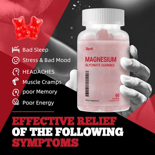 Sugar-Free Magnesium Glycinate Gummies 1000mg with Vitamin D, B6, CoQ10 - Strawberry Flavored Sleep & Mood Support - 60 Gummies