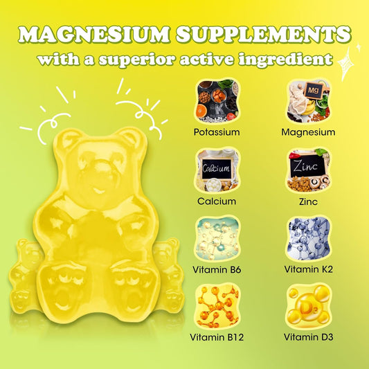 Sugar-Free Magnesium Glycinate Gummies with Vitamin D, B6, B12 - 90 Ct - Non-GMO for Adults & Kids - Supports Calmness & Sleep