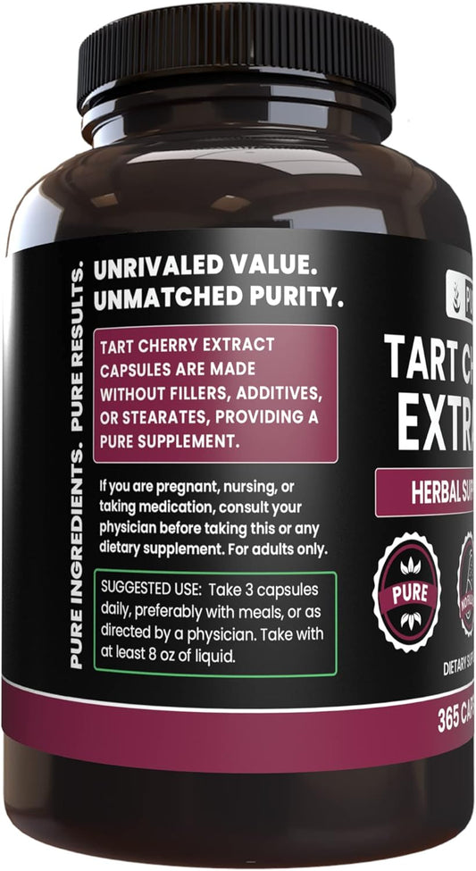 365 Capsules Pure Tart Cherry Extract - No Magnesium or Rice Fillers - Lab Verified & Original Ingredients