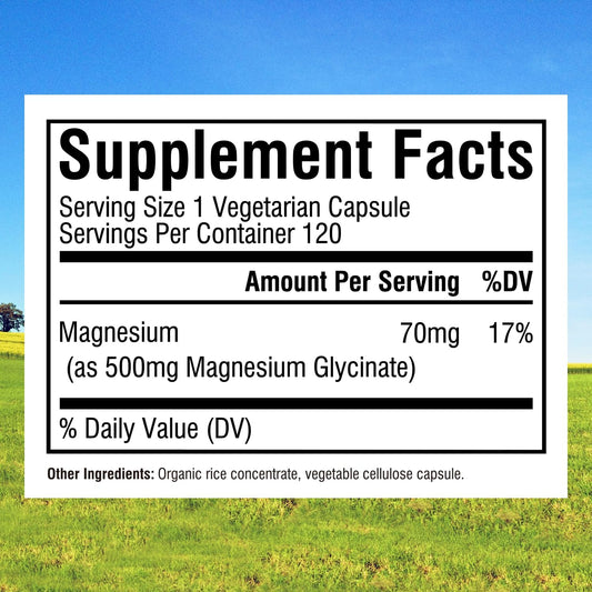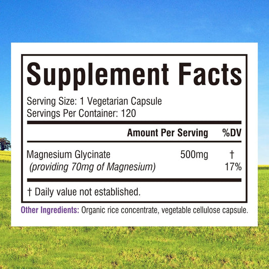 High Absorption Magnesium Glycinate 500mg | 70mg Elemental Magnesium | Non-GMO, Non-Buffered | Nerve, Muscle, Bone, Heart Health | 240 Capsules, 8 Months Supply