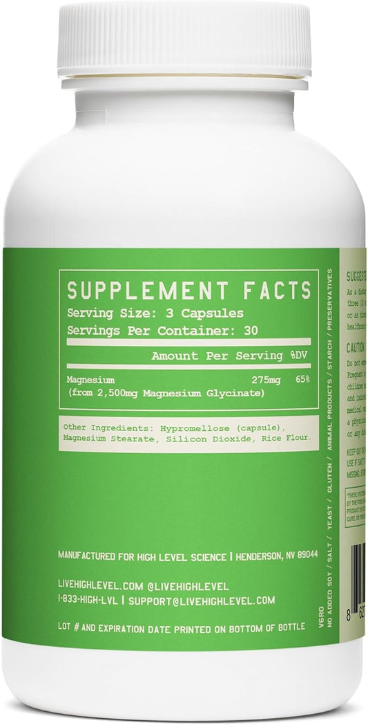 High Level Magmax Magnesium Glycinate Capsules - Natural Supplement for Bone, Sleep, Heart, Muscle & Cramps - Gluten-Free Vegan Formula, 90ct