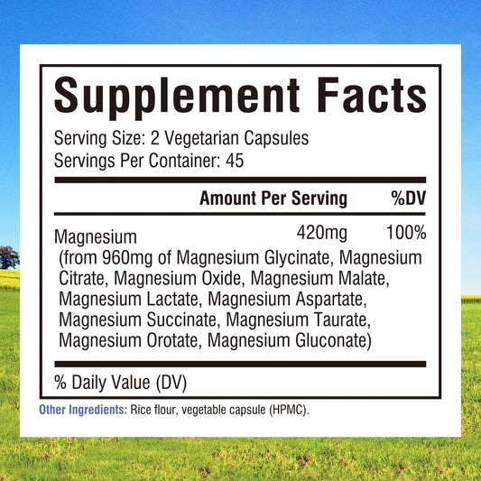 High Potency 10-in-1 Magnesium Complex with 420mg Elemental Mag, Full Spectrum Support, Non-GMO, 90 Vegan Capsules