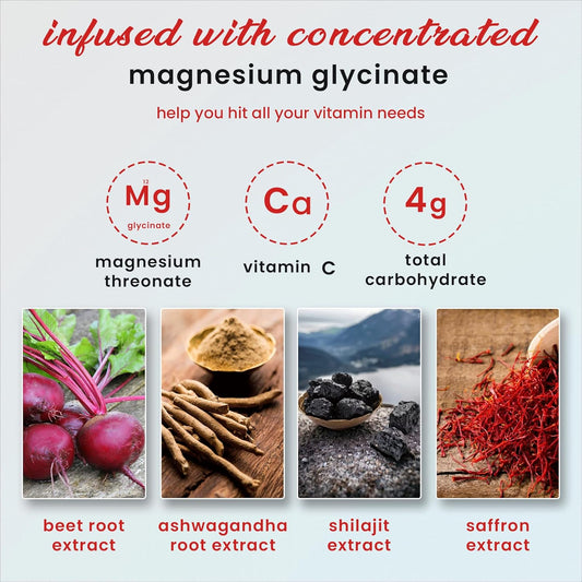 Premium Quality Wellnoura Magnesium Glycinate Gummies with Ashwagandha, Vitamin C & Shilajit - High Strength, Stomach-Friendly Formula with No Added Sugar