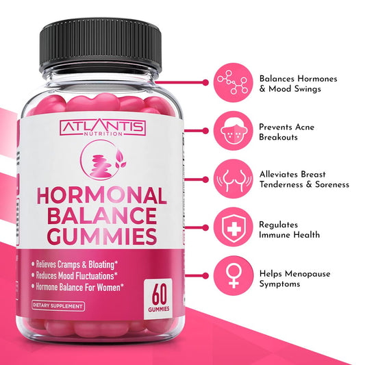 Atlantis Nutrition Hormonal Balance & Magnesium Gummies - Vegan Gummies for Muscle Cramps, PMS Relief, Bloating, Mood Swings - 60 Gummies