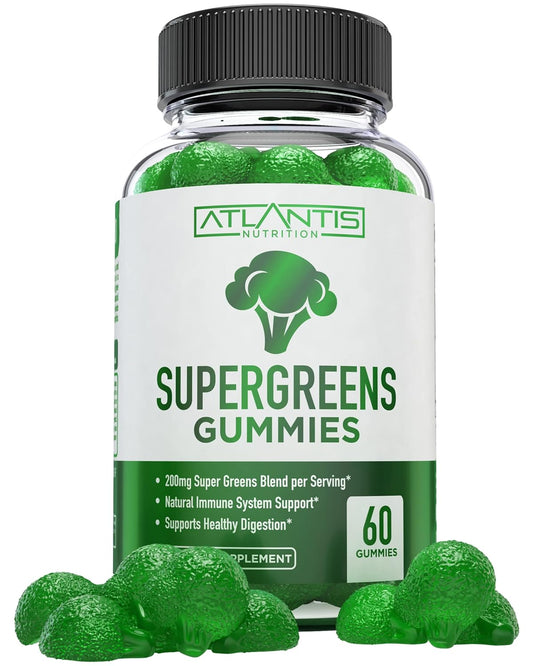 Atlantis Nutrition Supergreen & Magnesium Gummies - Immunity Support with Spinach, Broccoli, Beetroot & Acai - 60 Gummies