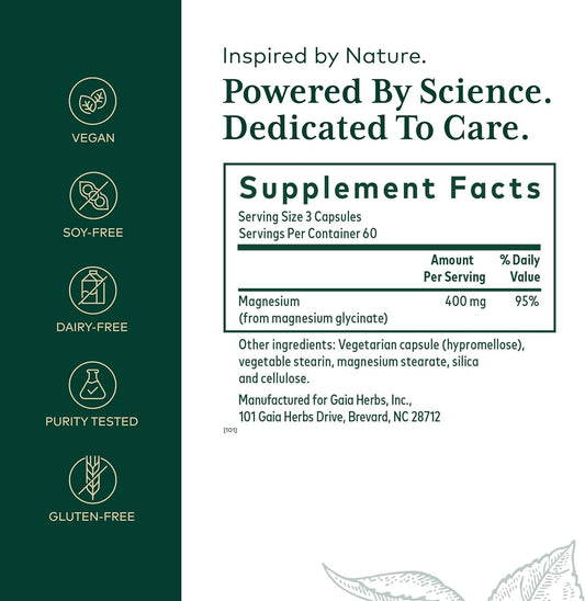 Gaia Herbs Pro Magnesium Glycinate 400 - Natural Sleep Aid & Stress Relief - Promotes Relaxation - 180 Capsules