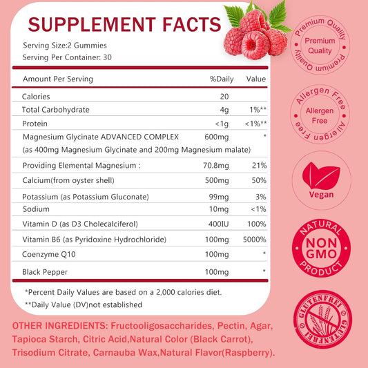 2 Pack of B BEWORTHS 600 Mg Magnesium Glycinate Gummies with Magnesium Malate, Citrate, & Potassium for Night & Joint Support, Energy Boost - Vegan & 0-Sugar - Raspberry Flavor - 120 Count