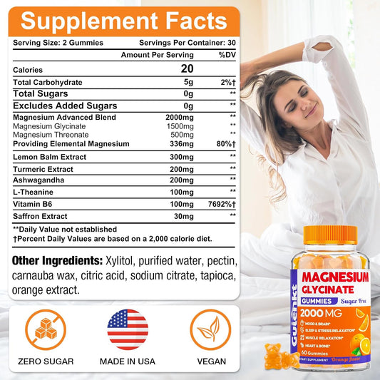 2000 mg Sugar-Free Magnesium Glycinate Gummies for Adults - Orange Flavor, 60 Count