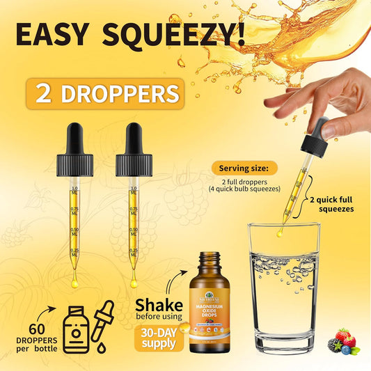 High Potency Liquid Magnesium Oxide Drops - Bone, Muscle, Heart Health Supplement - Easy-to-Absorb Sublingual Formula - 60ml