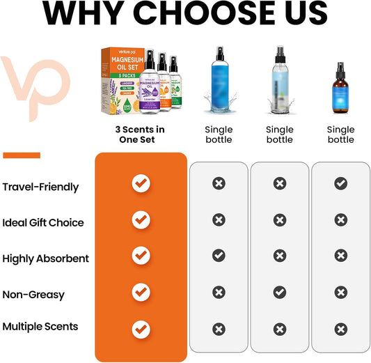 Set of 3 Venture Pal Topical Magnesium Oil Sprays for Feet - Relaxation, Sleep, Muscle Relief, Hair & Skin. Fast Absorption, Non-Greasy. Ideal Gift.