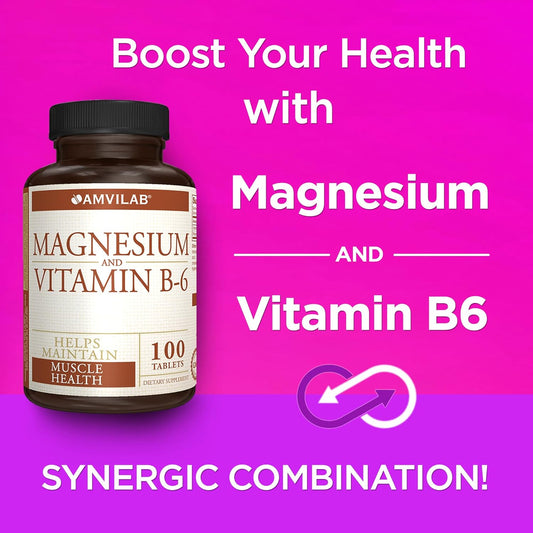 AMVILAB Magnesium and Vitamin B6 Tablets for Muscle and Brain Health, Nerve Function, Vitality, Sleep Quality, and Recovery Boost - 100 CountVendor:AMVILABRegular price $112.28 AUDRegular priceUnit price / per-