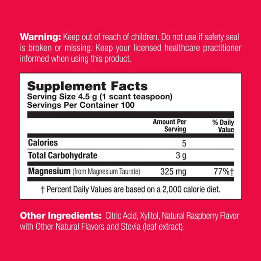 Red Raspberry Magnesium Taurate Powder Heart Health Drink Mix - Vegan, Sugar Free Supplement for Inflammation - 100 Servings