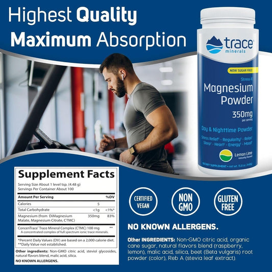 Stress-X Magnesium Powder Supplement for Muscle Relaxation & Sleep Support - Lemon Lime, 15.8 oz