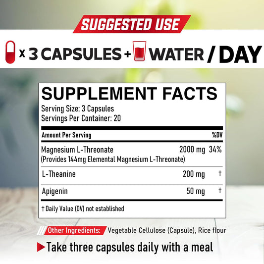Triple Magnesium Complex Supplement - 2 Packs of 60 Capsules (2250mg) with Magnesium L-Threonate, L-Theanine, and Apigenin