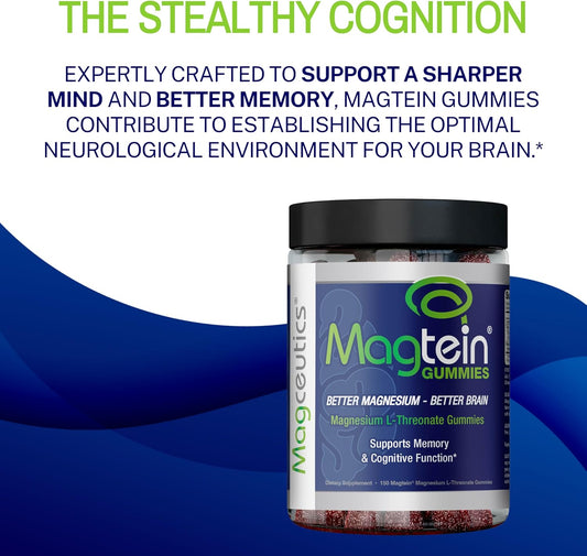 Magceutics Magtein Brain Support Gummies - Magnesium L-Threonate Supplement for Memory & Focus - 150 Vegan Gummies
