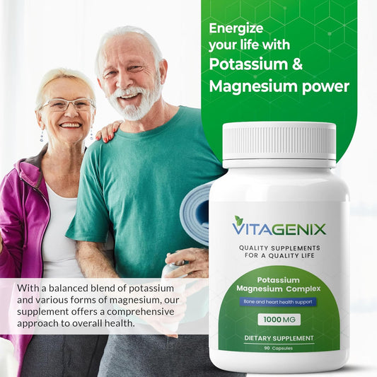 High Absorption Potassium Magnesium Supplement Capsules for Muscle, Bone, and Heart Health - VITAGENIX - Non GMO - 1 Pack